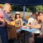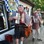 Bei hochsommerlichen Temperaturen und unter weiß-blauem Himmel wurde das Fest auf dem Bayernplatz mit alpinen Klängen von „Alphorn-Bavaria-Berlin“ eröffnet. Danach hieß es „O’zapft is“. Martin Stock, der das Fass mit fränkischem Bier als Geburtstagslage spendierte, brachte den edlen Gestensaft mit einem Schlag zum Fließen. Martin ist auch Initiator des Berliner Frankenstammtisches, mit dem er die fränkischen Regierungsbezirke von Bayern in Berlin vertritt. Neben den Franken war auch Franz Schuhbauer mit seinem Bayernstammtisch Berlin vertreten, dessen Stammtischbrüder mehr aus Oberbayern, Niederbayern und der Oberpfalz stammen. Musikalisch wurde der Schwäbische Regierungsbezirk repräsentiert, von Felix Lämmel mit seiner Jodel-Moni. Beide gehören auch zu den Steirer-Musikanten des Vereins. Zusammen mit Musikern vom Berliner Musikantenstammtisch wurde das Sommerfest stimmungsvoll umrahmt.