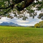 Jedem Regen folgt wieder ein Sonnenschein – gemäß dieser Naturerfahrung zeigte sich der Sonntagmorgen oberhalb von Hittenkirchen mit herrlichem Chiemsee- und Bergblick nach einem verregneten Samstag wieder von seiner versöhnlichen Seite – wie diese aktuellen Bilder bei der 1923 erbauten Kriegergedächtniskapelle zeigen.
