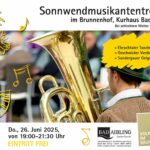 Am Donnerstag, den 26. Juni, von 19 Uhr bis 21:30 Uhr spielen die Ebrachtaler Tanzlmusi, die Geschwister Vordermayer und die Sundergauer Geigenmusi gemeinsam beim Sonnwend-Musikantentreffen im Brunnenhof des Kurhauses Bad Aibling auf. Vor genau 40 Jahren ist die Ebrachtaler Tanzlmusi das erste Mal aufgetreten. Aus Ebersberg stammend, treten sie heute noch nahezu in Originalbesetzung auf. In ihrem Repertoire befinden sich Eigenkompositionen von Peter Reichert und Stücke aus Bayern und Österreich. Ein „Ausgezeichnet“ beim Alpenländischen Volksmusikwettbewerb in Innsbruck, wo sie als Auftaktgruppe die Fernsehübertragung beginnen durften, bleibt für sie alle ein unvergessliches Erlebnis.