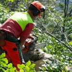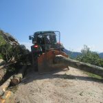 Kurz vor der Alm gibt es noch einen Stau: Baumfällarbeiten. Macht aber nichts, denn es ist ganz interessant zu sehen, wie ein mächtiger Baum umgesägt und abtransportiert wird. Nachdem der Weg wieder frei ist, sind wir gleich bei der Alm und haben auch Glück, daß wir einen freien Tisch bekommen. Es gibt nur almübliche Brotzeiten. Speckbrot und Käse schmecken aber ausgezeichnet und den Käse gibt es sogar “ToGo”, was wir auch machen.
