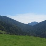 Also wieder nix mit Faulenzen, aber ich wollte eh schon lange einmal vom Wössener See auf die Rechenbergalm. Den Weg von dort kenne ich teilweise schon, hat mir aber nicht so besonders gefallen. Schöner und kürzer soll es von Brem aus sein. Wir starten daher am Wanderparkplatz in Brem und wundern uns, denn es sind gar nicht so viele Gleichgesinnte, die den freien Tag und das schöne Wanderwetter ausnutzen wollen. Wir laufen auf breitem, nicht sehr stark ansteigem Weg, bis zur Burgaualm. Jetzt geht es aussichtsreich weiter über freies Almgelände und dann ein Stück auf schmalem Steig auch nicht besonders steil durch den Wald bis wir auf die von Unterwössen heraufkommende Almstraße stossen, auf der es wieder aussichtsreich bis zur Rechenbergalm weiter geht.