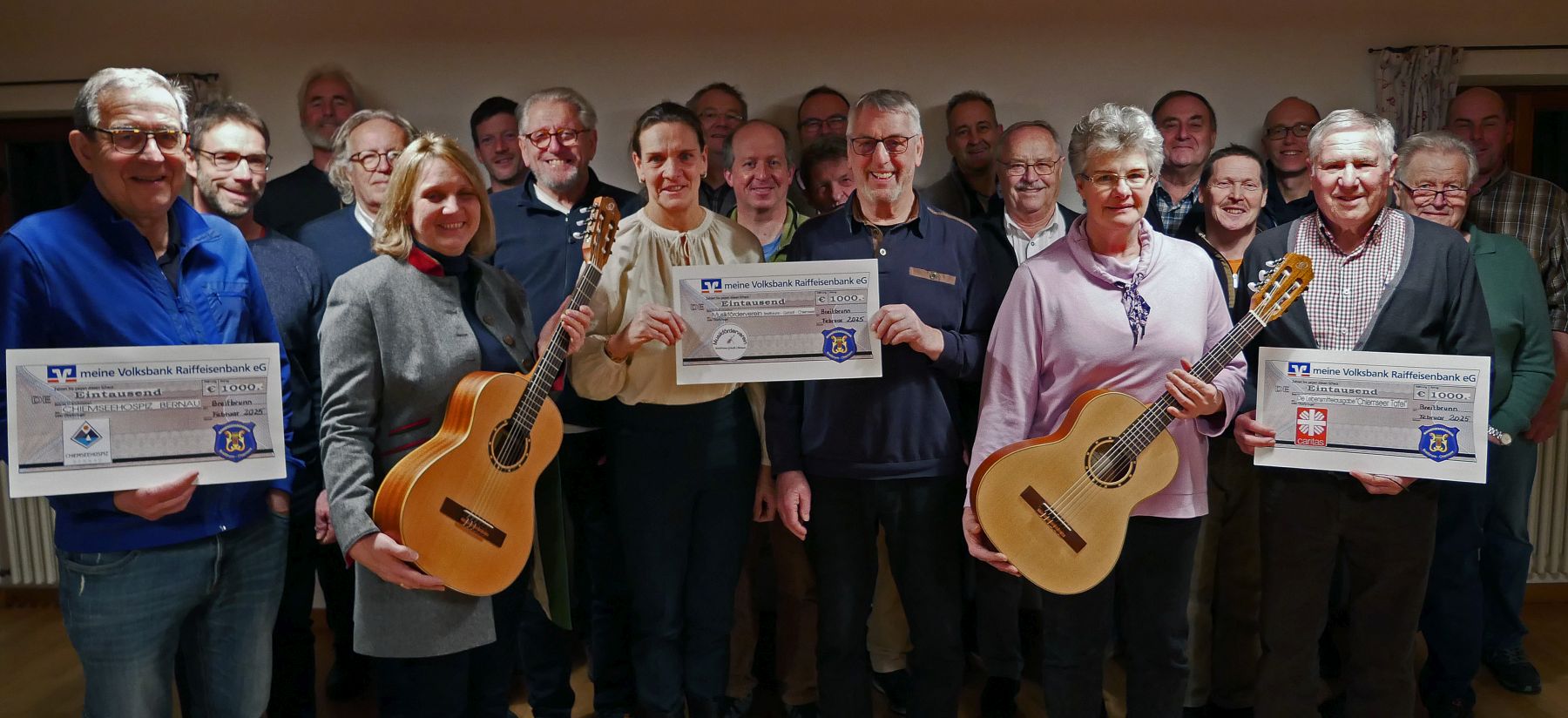 Auf dem Foto freuen sich die Sänger im Rahmen der Spendenübergabe von insgesamt 3000 Euro durch Vorsitzenden Sepp Obermeier stellvertretend an Marianne Graf (Mitte) vom Musikförderverein, in Begleitung von Monika Schartner (links) und Maria Ettenhuber (rechts)