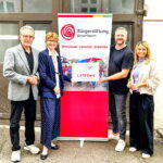 Bericht und Foto: Bürgerstiftung Rosenheim – (v.l.) Wolfgang Gösswein und Kirsten Lamprechter bei der Spendenübergabe an Christian Hlatky von der Bürgerstiftung mit Alexa Dietz (Stifterkreis Zukunft).