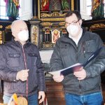 rosenheim_sanierung_1: Kirchenpfleger Franz Unterlinner (links) und Florian Weindl, Verwaltungsleiter der Rosenheimer Stadtteilkirchen-Am Wasen und Am Zug.