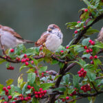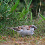 - Am kleinen Badeplatz hatten sich Sperlinge in einem Busch Zwergmispeln niedergelassen. Immer wieder sind sie auf den Boden geflogen, um hier zu picken.