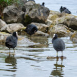 - In der Bucht sind sehr viele Blesshühner, die sich auf den Steinen sitzend, ihre Federn putzten.