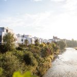 Selbst wer sich wenig oder nicht für kulinarische Höhenflüge wie die italienischen Gaumenfreuden von Giuseppe oder das Gebäck von den Kuchenträumen interessiert, kommt hier auf seine Kosten, weil das Gelände so vielseitig ist. Vor allem Liebhaber von architektonischen Lichtblicken sind hier goldrichtig. Was mehrere Architekten aus den einst bröckelnden und verfallenden Gebäuden der Spinnerei gezaubert haben, sorgt immer noch für Bewunderung im ganzen Land. Und für Ehrungen in Fachkreisen. Ob die Loftreihenhäuser am Kanal, das „Wohnen am Rosengarten”, oder die Y-Häuser im Spinnereipark – viele Bauwerke auf dem Spinnereigelände sind inzwischen preisgekrönt. Besonders gelungen: Der harmonische Mix aus Früher und Heute auf dem gesamten Gelände. Vom großen „Neubau“, der 1899 nach einem Großbrand in Betrieb genommen wurde und auch heute noch das Areal dominiert, über das liebevoll renovierte Pförtnerhaus, den Rosengarten, das auffällige Seilnetz, das Turbinen- und Kesselhaus, mit dem alles überragenden Kamin bis hin zum einstigen Batteurgebäude, liegen neue Gebäude und neuinterpretierte Altbauten einträchtig nebeneinander am Mangfallkanal. Und das Gelände wächst weiter. Das neueste Prunkstück: Der Spinnereihof vorne am Kreisel. Das Ensemble aus modernen Wohnungen, Büros und Gastronomie unter einem Dach bringt ein weiteres Stück Leben in ein urbanes Areal, das in der Region seinesgleichen sucht.