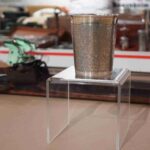 Nicht jedes der Exponate, das bei der Sonderausstellung gezeigt wird, wirkt auf den ersten Blick spektakulär und nicht alles ist uralt. Einer der aktuellen Neuzugänge ist beispielsweise eine rote Stofftasche der Rosenheimer Metzgerei Angerer, die erst vor wenigen Monaten geschlossen wurde. Noch nicht lange im Besitz des Städtischen Museums ist auch ein Tisch und zwei Stühle aus dem ehemaligen Cafè Weth. Die Möbel standen ab Mitte der 1950er Jahre bis zur Schließung des Cafès im Jahr 2020 im Gastraum im Zwischenstock.