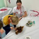„In einem eigens aufgebauten Krankenhaus durchlaufen die Kinder mit ihren Kuscheltieren verschiedene Stationen – von der Anmeldung über die Untersuchung, Röntgen, MRT bis hin zur Operation und abschließendem Apothekenbesuch. Spielerisch und ohne Angst lernen sie dabei medizinische Abläufe kennen und verlieren so die Scheu vor Arztbesuchen und Kliniken”, so Dr. Nico Hanny, der Initiator des Teddybärkrankenhauses Rosenheim. Zwei ehrenamtliche Helfer des BRK Bad Aibling waren ebenfalls vor Ort und gaben den Kindern Einblick in den Krankenwagen und Aufgaben des BRK.