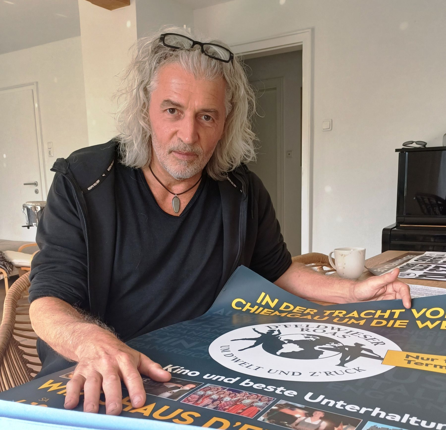 Stefan Erdmann erklärt das Konzept zu seinem Film über die Reisen der Chiemgauer Trachtler rund um die Welt.