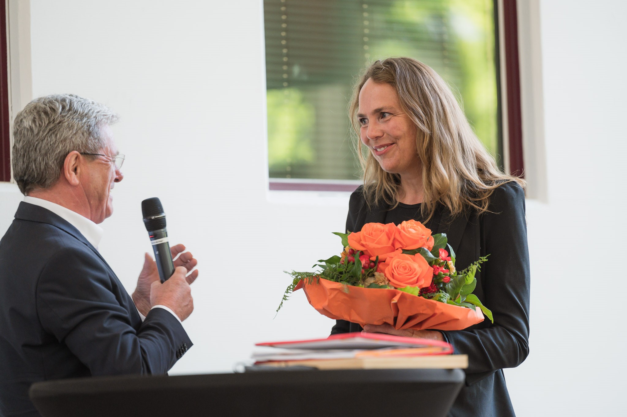 Emotionaler Abschied: Hochschulpräsident Prof. Heinrich Köster bedankte sich für das jahrelange Engagement von Prof. Janett Höllmüller, die nach elf erfolgreichen Jahren die IKORO nicht mehr leiten wird. (Bild: Andreas Jacob)