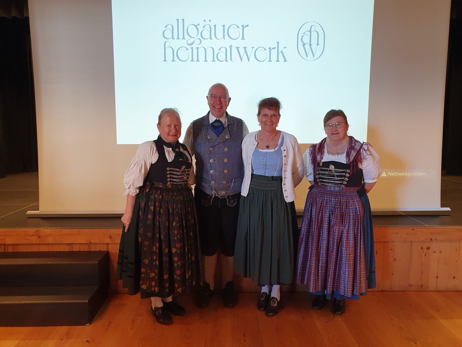 Die Leiter des Sachgebietes Trachtenpflege und Trachtenforschung Annamirl Raab, Petra Schadt und Getraud Kerschner mit Richard Hartmann