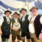 - Erinnerungsgeschenk für Bayer. Trachtenverband von links: Brian Oberheim, Toni Hö. – Joe Hubner – Bob Hugel