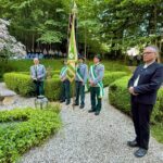 Im Anschluss daran versammelten sich die Griabinga-Trachtler am Familienfriedhof der Freiherrn von Cramer-Klett auf dem Schlossberg zum traditionellen Totengedenken. Erster Fähnrich Lorenz Hofmann senkte die Vereinsfahne zum Gruß und stillen Andenken an die freiherrliche Familie von Cramer-Klett – langjährige Förderer der Trachtensache und Protektoren des Chiemgau-Alpenverbands – sowie an die verstorbenen Vereinsmitglieder. Erster Vorstand Claus Reiter erinnerte an jene Mitglieder, die im vergangenen Jahr verstorben sind. Namentlich gedachte er ihrer und betonte, wie wichtig es sei, das überlieferte Erbe von Tracht und Brauchtum mit Kraft und Mut weiterzugeben.