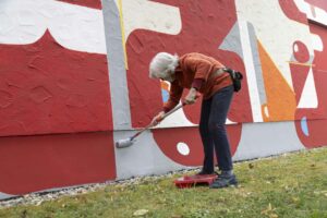 Seniorin Leni bei der Wandgestaltung, Seniorenwohnheim Küpferling, Foto © Martin Weiand