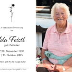 Eine überaus große Trauergemeinde nahm in der Pfarrkirche „Darstellung des Herrn“ in Aschau i. Chiemgau Abschied von Ida Feistl, die nach kurzer Krankheit im Alter von 87 Jahren verstarb. Ida Feistl war nicht nur Mittelpunkt einer Großfamilie mit vier Kindern, neun Enkelkindern und elf Urenkel-Kindern sondern ob ihrer geselligen und hilfsbereiten Art in der gesamten Gemeinde sowie bei den Orts- und Brauchtumsvereinen recht geschätzt.
