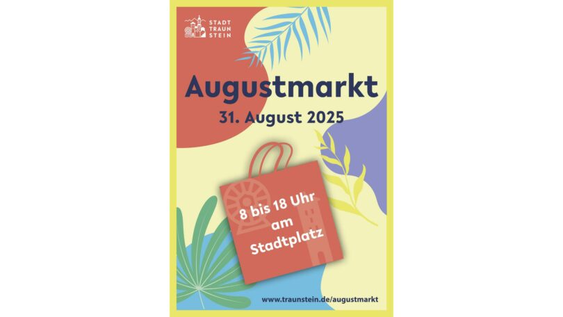 Am Sonntag, 31. August, findet auf dem Stadtplatz wieder der beliebte Augustmarkt statt. Von 8 bis 18 Uhr bieten mehr als dreißig Handeltreibende ein vielfältiges Warensortiment an.