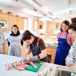 Ehe allerdings Cevapcici, ein Irischer Lammeintopf, ein Lamm-Koku-Curry-Gericht oder Lammbraten und Lammkoteletts gekostet werden konnten, gab es fachkundigen Unterricht beim Zerlegen des Lammes. Hier stellte sich der pensionierte Metzger Ludwig Waritschlager aus Obing zur Verfügung. Und für die Erläuterungen beim Kochen sorgte der gelernte Koch Sepp Weismann aus Waging am See. Die beiden Lämmer für Schulzwecke und Gaumenfreuden stammten aus den Haltungen von Angelika Döpert aus Siegsdorf und von Josef Harbeck aus Waging.