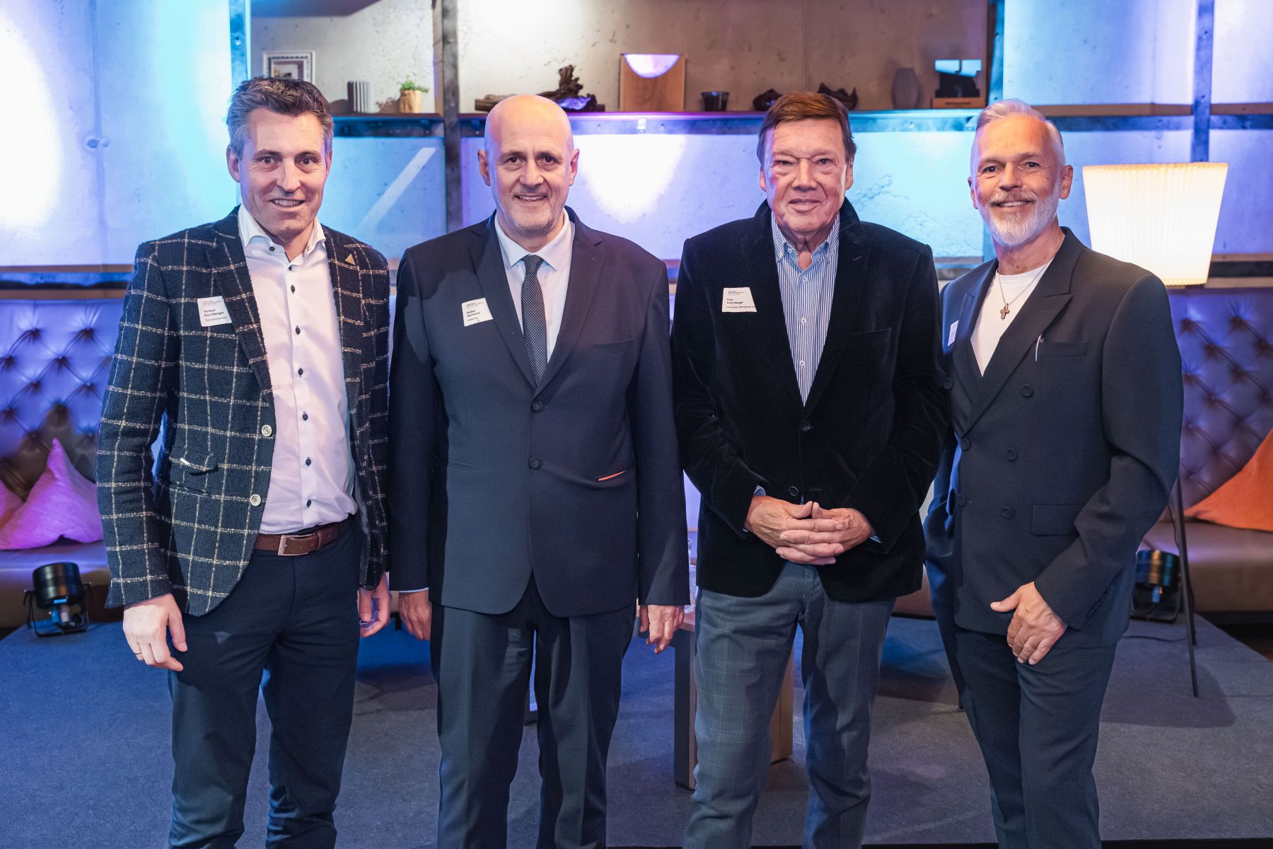 Tourismus und Wirtschaft im Dialog bei den Kufsteinerland Wirtschaftsgesprächen: Der Tourismusverband Kufsteinerland lud zum Wirtschafts-Talk mit KR Fritz Unterberger. Neben Top-Unternehmer*innen und -Manager*innen aus dem Wirtschaftsraum Kufsteinerland begrüßten TVB-Obmann Georg Hörhager und Aufsichtsratsvorsitzender Helmut Naschberger auch Gäste vom Verein Europäische Metropolregion München e.V.. Im Bild von links: TVB-Aufsichtsratsvorsitzender Helmut Naschberger, Walter Osztovics, KR Fritz Unterberger und TVB-Obmann Georg Hörhager.