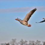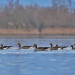 Auf dem See sind noch viele Wintergäste, wie die Schellente, auch wenn die Schneebedeckung bei uns am Chiemsee diesen Winter eher mau war. Auf den Feldern gehören neben den Graugänsen auch einige Saatgänse und Blässgänse dazu. Diese wurden jedoch absichtlich von einem Modellflieger aufgeschreckt und suchten Zuflucht auf dem See.