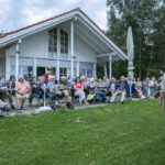 Das Programm war unterhaltend gestaltet – beim zweiten Stück, der Schnellpolka „Auf der Jagd“ (Johann Strauß Sohn) wurde der Jagdeffekt von den Schlagwerkern lautstark umgesetzt. Viele Märsche forderten die Musikanten – darunter der zündende Marsch „Kameraden auf See“, den die Blasmusikanten mit Gesang untermalten: „Wir sind Kameraden auf See! Komm’, Mädel, nun gib mir den Abschiedskuß, Sei tapfer und treu, wenn ich scheiden muß! Und fahren wir heute hinaus, Wir kommen ja wieder nach Haus. Wir stehen wie Felsen in Luv und Lee, Wir sind Kameraden auf See!“ Ansager und Klarinettist Thomas Strohmayer führte unterhaltsam und informativ durch den Abend, band das Publikum ein und überbrachte auch Geburtstagsgrüße. Nachdem mit dem Marschklassiker „Alte Kameraden“ der Schlussakzent gesetzt war, begann das bis dahin trockene, aber windige Wetter umzuschwingen und es setzte leichter Regen ein, der sich im Laufe der Nacht zu einem Unwetter entwickeln sollte. Am Ende des „kameradschaftlichen Blasmusikabends“ wurden die Musikanten von der Wirtin Uschi auf eine Brotzeit eingeladen und man ließ den Restabend gemeinsam ausklingen. Der Musikverein bedankt sich beim Team vom Strandkiosk Luise für die Gastfreundschaft und dem Veranstalter Mike Wielandner von der Tourist Info Übersee am Chiemsee für den Mut, die Veranstaltung durchzuziehen.