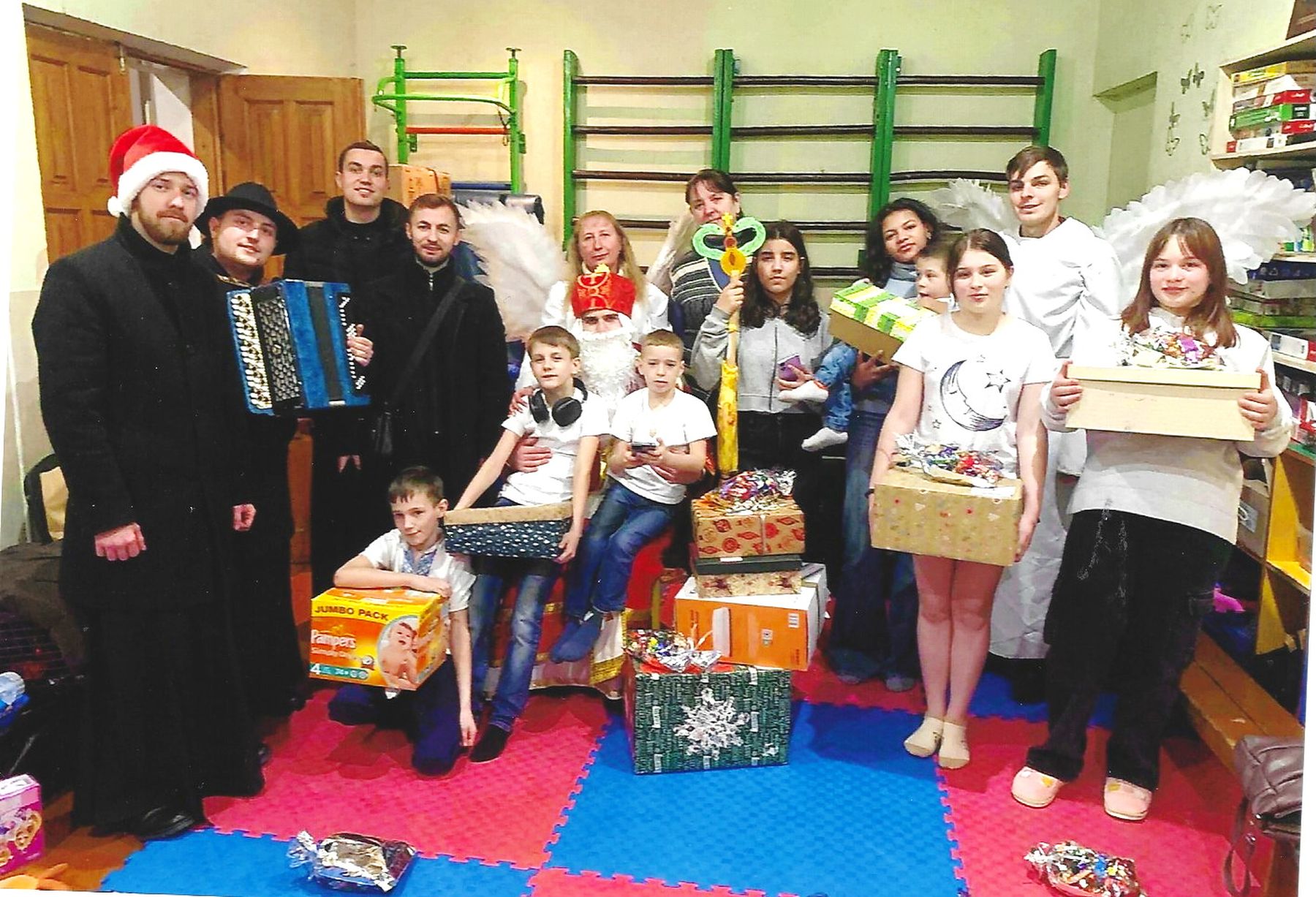 Seminaristen bringen Nikolaus-Geschenke zu den Kindern und Jugendlichen in einem der Flüchtlingsunterkünfte