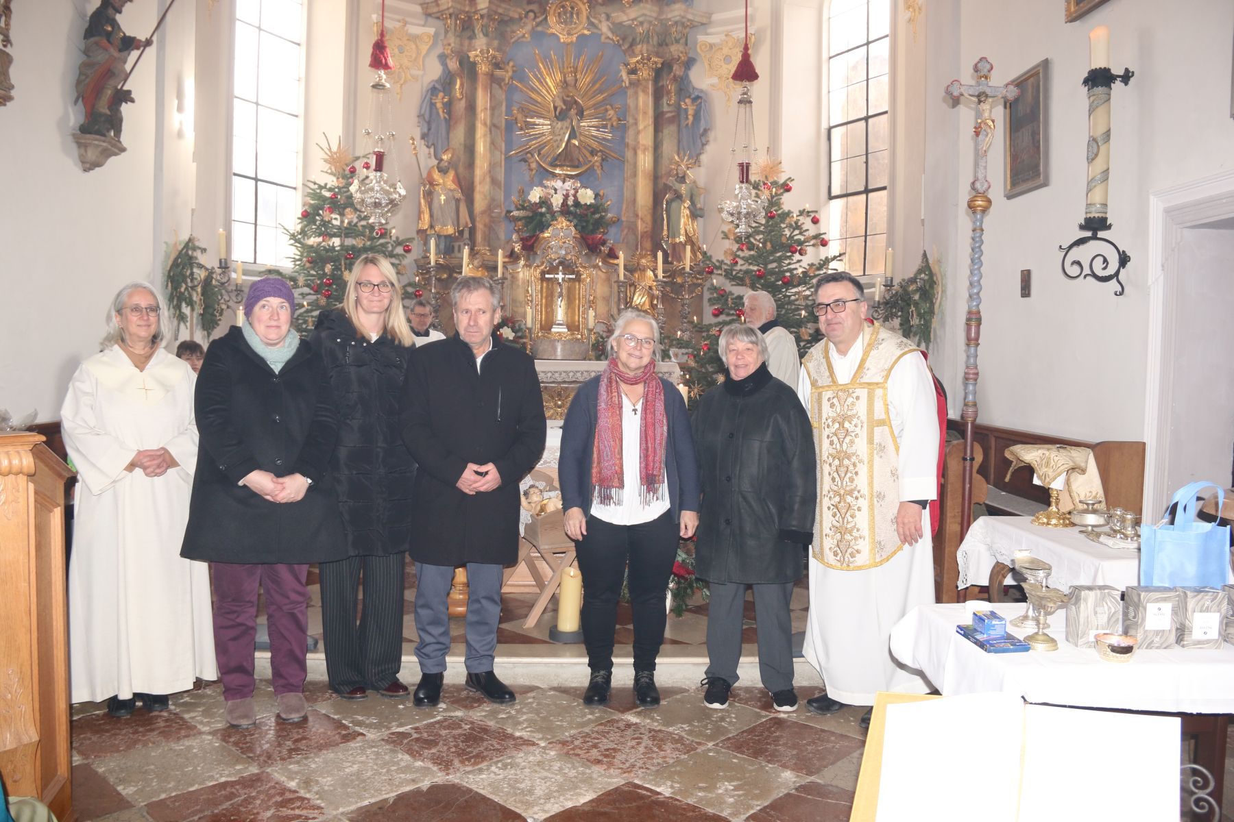 v.r. Pfarrer Christoph Rudolph, Barbara Heinrich-KAB, Gundula Langer, Nicol Brunner, Elisabeth Purainer, Manuela Bauer nunmehrige Gemeindereferentin