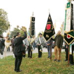 Foto zeigen 117 Pfarrer Christoph Rudolph links- Alexander Schopf 2.v. l. mit der neue Fahne