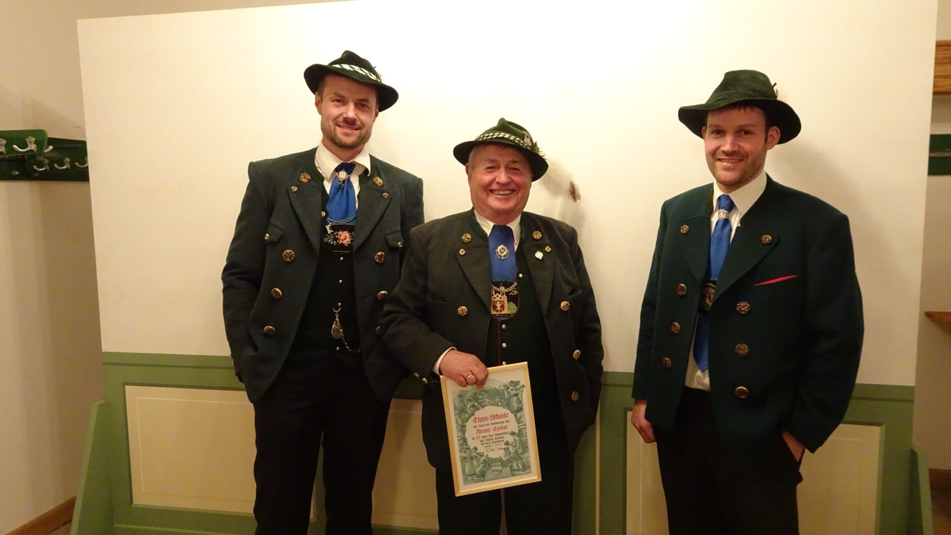Ehrungen von links Franz Huber, Werner Sziedat, Vorstand Kilian Wüchner