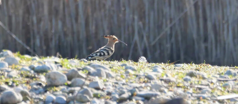 Bei strahlendem Frühlingswetter kehren Ende März die ersten Zugvögel in die Schafwaschener Bucht zurück. Eine besondere Überraschung bot sich den Beobachtern: Versteckt auf der Kiesinsel entdeckten sie einen Wiedehopf – und kurz darauf ließ er sich sogar bei Gegenlicht bewundern. Dieser wunderschöne Vogel ernährt sich von Großinsekten und Larven.