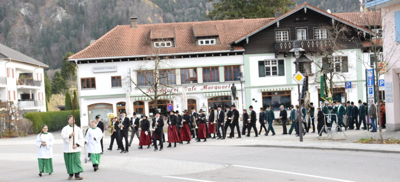 Die Marquartsteiner Vereine, die Mitglieder der Feuerwehr und die Musikkapelle versammelten sich am Ritter Marquart Brunnen, um gemeinsam mit dem Pfarrer der evangelischen Kirche, Rainer Maier und dem Diakon der katholischen Kirche Johannes Notter unter den Trommelschlägen der Kapelle zum Kriegerdenkmal zu gehen. In den Ansprachen der Geistlichkeit zum Volkstrauertag ging es um die Liebe und die Angst.