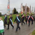 Die Fahnenabordnungen der Vereine aus der ehemaligen Gemeinde Wildenwart auf dem Weg zum Kriegerdenkmal