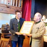 Bericht und Fotos: Christiane Giesen  – Neben einem Fassl Bier und viel Applaus aus der Versammlung erhielt der langjährige Aufsichtsratsvorsitzende Herbert E. Graus die Urkunde zum Ehrenaufsichtsratsvorsitzenden der AG Wirtshaus D´Feldwies aus den Händen von Übersees Bürgermeister Herbert Strauch.