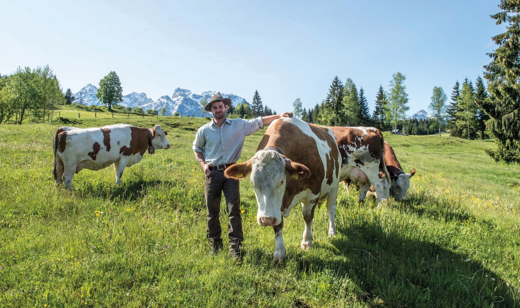 Alois Kramer ist einer von 1.000 Landwirten der Molkerei Berchtes-gadener Land, der seine Kühe im Sommer auf die Weide treibt.