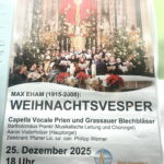 Im Rahmen der  Kirchenmusik in der Pfarrei “Mariä Himmelfahrt” wird es in Prien a. Chiemsee am Ersten Weihnachtsfeiertag, 25. Dezember zu einer musikalischen Weihnachtsvesper.