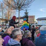Von den „Omas gegen rechts“ bis zu Mitarbeiterinnen der Priener Bücherei wollten überraschend viele engagierte Bürger ein Zeichen setzen für Solidarität und gegen Diskriminierung, Ausgrenzung, Hetze und Gewalt. Mit Schildern und Bannern bekundeten sie ihren Wunsch nach Erhaltung unserer Demokratie und für eine Gesellschaft mit Vielfalt statt Einfalt. Nach Reden von Organisator Detlef Dobersalske vom Bündnis “Prien bleibt bunt” , Pfarrer Mirko Hoppe und weiteren Rednern rundete der Priener Chor “Swingin Voices” die Veranstaltung mit passenden Gospels und Spirituals ab.