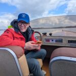 Und tatsächlich: Schon bald tauchte vor den Booten ein großer „Fisch“ auf – allerdings kein Wal, sondern ein Hai. Die Fahrt führte weiter entlang der Herreninsel, während Wolfgang Sedlmeir Wissenswertes und humorvolle Anekdoten über die angeblichen Chiemsee-Wale erzählte – darunter auch die fantasievolle Geschichte, wie diese überhaupt in den See gekommen sein sollen.