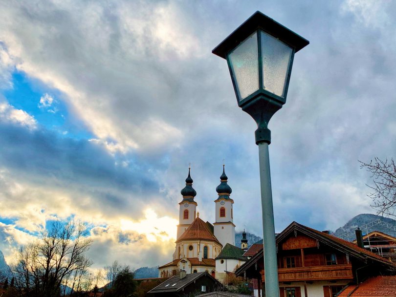 Dick mit Wolken verhangen zeigt sich gleich zu Beginn des neuen Jahres der Horizont über Aschau i.Chiemgau. Doch plötzlich tut sich eine Lücke auf und die Sonne lässt dabei die Pfarrkirche im Bankerldorf in ein besonderes Licht rücken. Ein goldgelbes Wunder erleuchtet und es zeigt sich einmal mehr, die Natur ist immer wieder für besondere Momente und Überraschungen gut. Als Kontrast zum natürlichen Sonnenlicht, leistet hingegen bei der dunklen Tageszeit die Straßenlaterne am Fuße des Kirchbergs ebenfalls wertvolle Dienste. Energiewende hin oder her, eine gesunde Mischung und ein gutes Miteinander macht den perfekten Alltag aus.