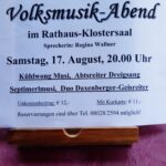 Am Samstag, 17. August gibt es wieder einen Volksmusik-Abend im Rathaus-Klostersaal der Gemeinde Fischbachau im Leitzachtal.