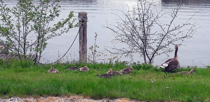 Gleich eine ganze Wildgänse-Familie kam zum Start in die neue Woche unserem Fotografen vor die Linse. Mit dem nötigen Abstand und mit Rücksicht auf die jungen, ruhenden Gänse gelang diese Aufnahme in Bernau-Felden am Chiemsee.