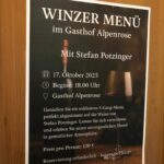 Ein besonderes kulinarisches Angebot bietet der Gasthof Alpenrose in Grainbach auf dem Samerberg am Freitag, 17. Oktober. Zu einem Winzer-Menue-Abend kommt Stefan Potzinger von seinem Weingut in der Südsteiermark.