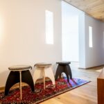 Esther Moszeik, die Frau hinter „YAH – Yoga am Heuberg“, ist mit ihrem Mann vor 7,5 Jahren aus München nach Nußdorf gekommen. Eher aus Zufall, wie sie sagt. Damals wussten die beiden „Städterer” noch nicht, ob sie wirklich Landmenschen sind. Der Ehemann war schnell integriert durch seine Arbeit bei der Bergwacht. Für Esther Moszeik dauerte es ein paar Monate und ein Waldfest länger, doch dann traf auch sie auf ebenso offene und lockere Menschen, wie sie selbst einer ist. Schließlich fand sich Bauland, und vor 3,5 Jahren wurde mit Kind, Hund und Kater das eigene Haus bezogen. Dass es Platz für ein Yogastudio geben würde, war von Anfang an klar und Teil der Gebäudeplanung. Ladenbau und Inneneinrichtung sind beruflicher Alltag für ihren Ehemann, der gemeinsam mit seinem Partner die Inntaler Naturbau GmbH gegründet hat. Die Ausgestaltung nach Yoga-Gesichtspunkten löste Esther Moszeik nach Konsultation befreundeter Yogalehrer:innen. Geht man die Stufen zum YAH Studio hinunter, trifft man auf sorgsam durchdachtes Design, welches auch im Inneren konsequent durchgesetzt wird. Sei es durch die Zwischenwände im Eingangsbereich mit bewusst gesetzten Lücken oder das Fenster mit Bergpanoramablick, welches dem Raum durch die wechselnden Lichtverhältnisse zusätzlich Spannung verleiht.