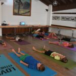 „Ein Urlaubstag am Meer“ versprach Yoga-Lehrerin Bettina Rappl den Kindern. Visuell möglich war das mit einem Film an der Leinwand mit Bildern von den tollen Wellen im Pazifischen Ozean bei Hawaii. Die jungen Yogis lockerten erst ihren Körper mit „Radfahren“ auf dem Rücken mit dem Motto „wir fahren ans Meer“ um dort auf ihrer Yogamatte wie auf einem Surfbrett zu stehen und die entsprechenden Yoga-Übungen auszuüben.