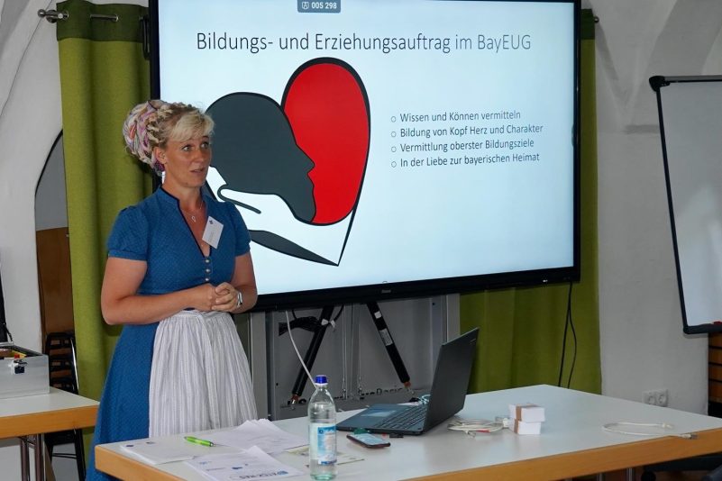 Veronika Söllner, stellvertretende Landesjugendvertreterin Trachtenjugend, referierte über Dialekt und Brauchtum in der Schule. „Dialekt ist oberste Staatsaufgabe“ zitierte sie den Bayerischen Ministerpräsidenten Dr. Markus Söder. Es geht dabei nicht nur darum Wissen und Können zu vermitteln, sondern auch Kopf, Herz und Charakter zu bilden.