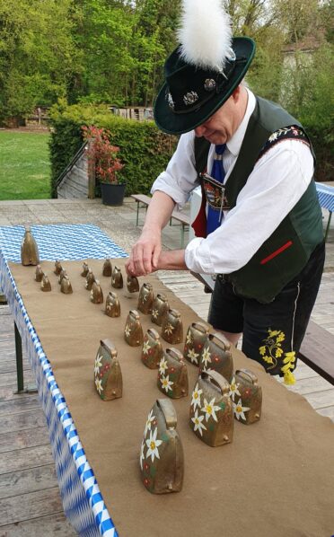 In Bayern wird dieser Tag, der ganz im Zeichen der Freude über den Frühlingsbeginn steht, normalerweise mit der Tradition des Maibaumaufstellens gefeiert. Da dieser Akt einen hohen Kraftaufwand erfordert und nicht ganz ungefährlich ist, verzichten die Berliner auf das jährliche Aufstellen des Maibaums. Er schmückt somit den Bayernplatz in Berlin das ganze Jahr über. Zeitnah zum 1. Mai finden in Bayern aber auch die traditionellen Almauftriebe statt, wo die Kühe auf Bergwiesen, den sogenannten Almen, verbracht wird. Hierzu fehlt den Berlinern jedoch das zugehörige Weidevieh. Somit steht die Maifeier des Vereins der Bayern in Berlin generell unter dem Motto „Eröffnung der Plattlsaison für das laufende Jahr“, dem sogenannten „Anplattln“. Musikalisch umrahmt wurde das „Anplattln“ vom Trio des Alphornensembles „Alphorn Bavaria Berlin“, dem Berliner Musikantenstammtisch und den Steirermusikanten des Vereins. Für den Gaumen gab es u. a. pikante Thüringer Bratwürste und original bayerischen Leberkäse, dazu selbstverständlich Hopfengetränk gemäß bayerischer Biertradition. Ein besonderer Dank galt der Küchen-Crew (Franzi, Patricia, Maja, Nicole, Heiko und Matthias) für die Organisation der Hütten-Küche. Während in der City Berlins die legendären Mai-Demonstrationen im Gange waren, haben die Berliner Bayern mit ihren Gästen im Süden der Bundeshauptstadt eine gemütliche 1. Maifeier nach bayerischer Biergartentradition erlebt.