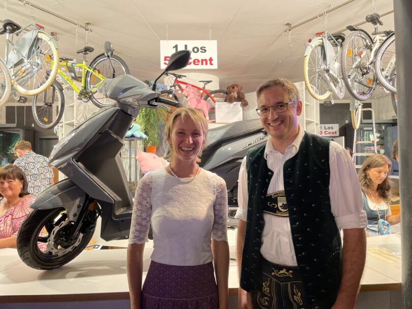 Den ersten von zwei flotten Motorrollern hat sich die Frau Weidacher aus Urschalling am mittleren Wiesnsamstag geschnappt. Die sympathische Frau vom Chiemsee verbrachte mit Ihren Freundinnen einen schönen Damenabend auf dem Rosenheimer Herbstfest, bei dem der Loskauf am Glückshafen natürlich nicht fehlen darf. Sage und schreibe 3 Lose reichten Frau Weidacher für den großen Wurf. Zusätzlich war noch eine Serie I dabei. Eigentlich wollte die junge Frau noch ins Rosenheimer Nachtleben entschwinden, stattdessen durfte Sie die Familie daheim erstmal von ihrem Glück informieren und den Rollertransport nach Urschalling organisieren.