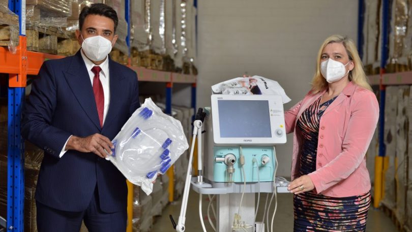 Bayerns Ministerin für Internationales, Melanie Huml, hat 100 medizinische Beatmungsgeräte aus dem bayerischen Pandemiezentrallager an den indischen Generalkonsul Mohit Yadav übergeben. Voraussichtlich kommende Woche werden die Geräte über das Gemeinsame Melde- und Lagezentrum für Bund und Länder (GMLZ) auf den Weg gebracht. Zuvor wurde noch eine englische Benutzeroberfläche auf die Geräte aufgespielt. Huml: „Diese Maßnahme ist ein Akt der Humanität und Solidarität mit einem engen Partner Bayerns, der sich in einer akuten Notlage befindet.“ Generalkonsul Yadav betonte die Wichtigkeit internationaler Partnerschaft und Freundschaft und dankte über Twitter: „Jedes Leben zählt und jede Geste macht einen Unterschied.“ Jedes der Beatmungsgeräte werde helfen, die zweite Welle in Indien zu bekämpfen.