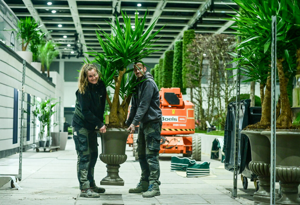 „Babylon Garden – Blütezeit der goldenen Zwanziger“ lautet das Motto der Blumenhalle. Auf 3.000 Quadratmetern entstehen Parklandschaften mit mehr als 30 Bäumen, 35.000 Frühblühern und Springbrunnen. Ein floraler Nachtclub und das „KaDeFleur“ im Stil der 1920er-Jahre erwecken die Gründungszeit der Messe zum Leben.