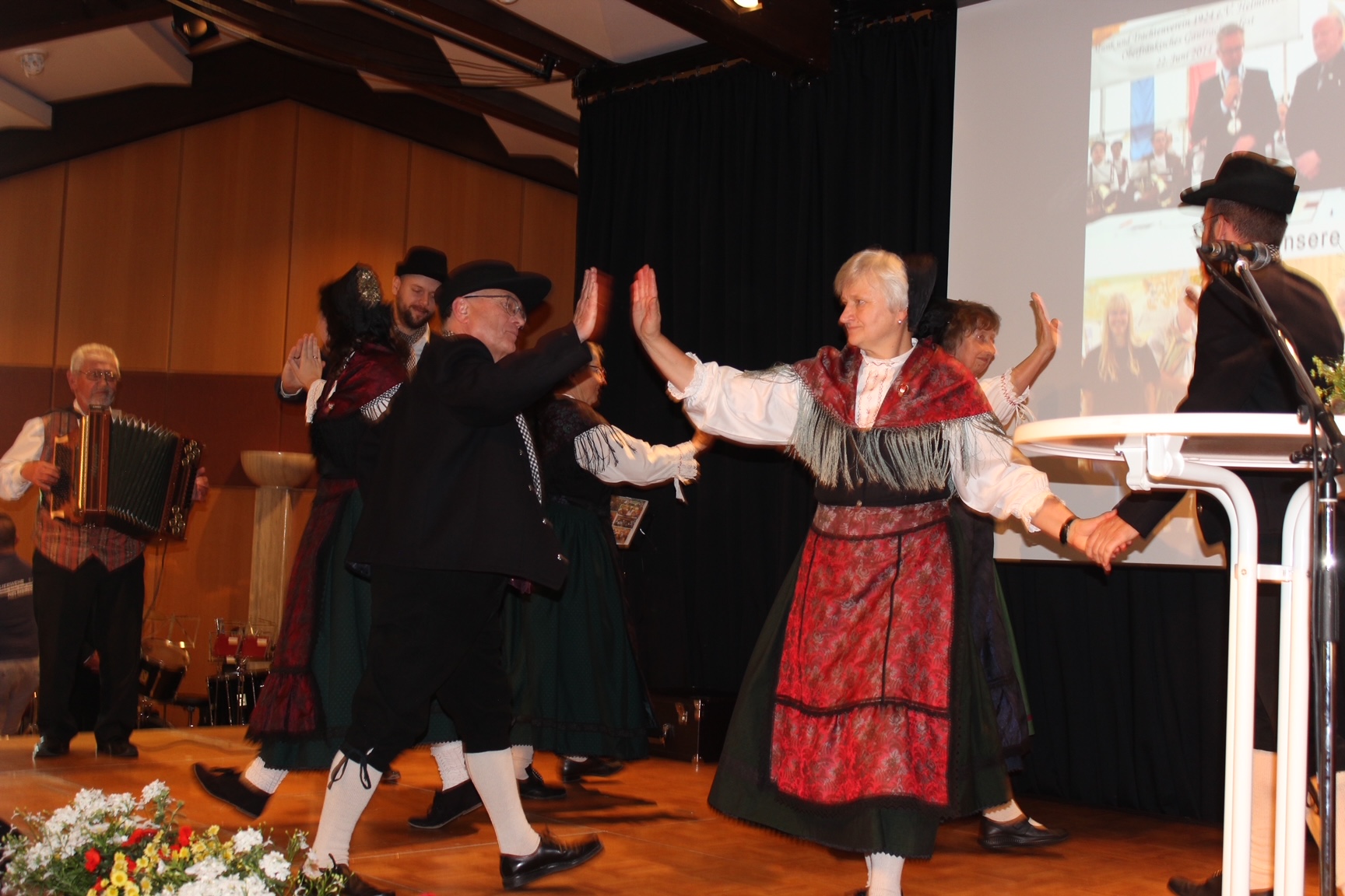 Die Tanzgruppe des Musik- und Trachtenvereins Helmbrechts führte zum Jubiläum des Vereins Tänze auf und begeisterte das Publikum