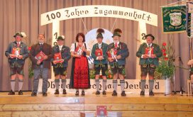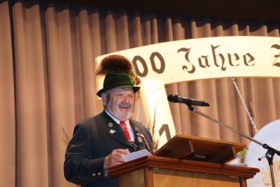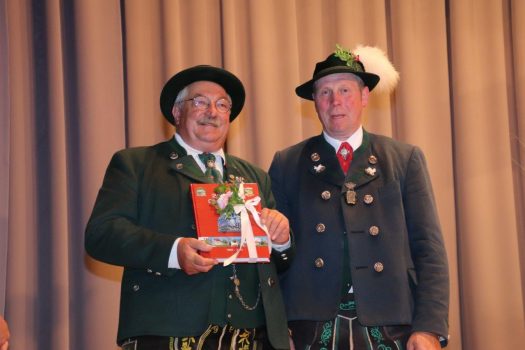 Konrad Vogel vom Chiemgau-Druck brachte zum Ausdruck, dass er mit Freude und großem Sachverstand bei dieser Chronik mitarbeiten durfte. Wer den Oberen Lechgau-Verband kennt, der weiß, wenn hier eine Chronik gemacht wird, dann wird sie etwas Gutes werden. Für ihn sei dies die 18. Gauchronik und auch seine Allererste war die 1. Chronik vor 40 Jahren. Dieses Buch ist nicht nur für Trachtler, weil diese mittlerweile einen sehr hohen Stellenwert in der Gesellschaft haben. Viele Passanten und Besucher bei Veranstaltungen belegen dies. Gute Bücher haben auch in den nächsten Jahrzehnten noch einen enormen Wert und sind wichtige und schöne Nachschlagewerke. Ehrenvorstand Max Bertl fühlte sich fast wie beim Gaufest im Kreise der Trachtlerfamilie in dieser Buchvorstellung. Die Vorstellung drei Monate später als geplant, sei kein Problem, hatte die 1. Chronik doch drei Jahre Verspätung. Die Bücher des Oberen Lechgau-Verbandes sind immer gut und auch diese Chronik wird nie ihren Wert verlieren. Zum 100. Geburtstag eine neue Gauchronik zum Geschenk machen heißt das Geschehen festhalten für die Gesellschaft, denn vieles wird in der heutigen Zeit einfach hingenommen und kaum noch wahrgenommen.
